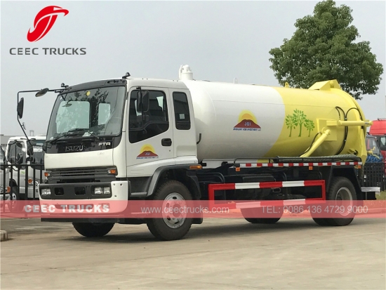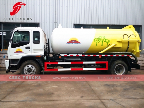 ถังบำบัดน้ำเสียแบบถังคู่ขนาด 10,000 ลิตร ยี่ห้อ ISUZU เครื่องยนต์ดีเซล ISUZU 4HK1-TC 190 แรงม้า กระปุกเกียร์ธรรมดา 6 เกียร์ของ Isuzu MLD รถบรรทุกวัสดุเหล็กกล้าที่มีความแข็งแรงสูงสามารถจุได้ถึง 10 ลูกบาศก์เมตร ปั๊มสุญญากาศ WEILONG อุปกรณ์ยกแบบไฮดรอลิกสำหรับระบายขยะ งานพ่นสีและโลโก้ ขึ้นอยู่กับคำขอ