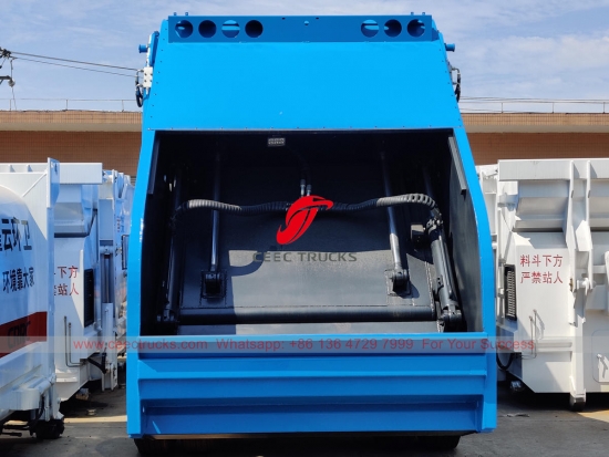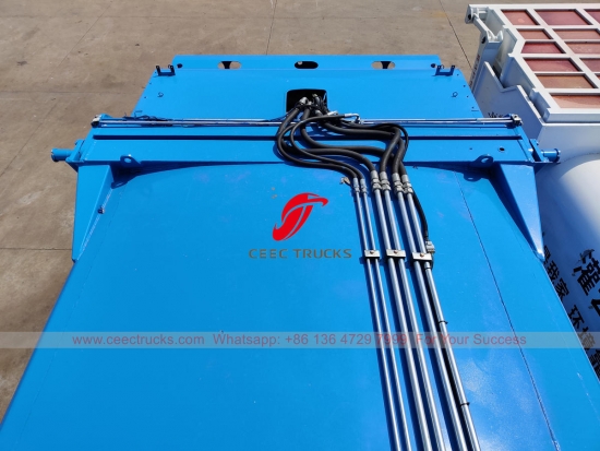 ตัวเครื่องอัดขยะส่วนบนคุณภาพสูง 12 CBM ซึ่งใช้ตัวเครื่องอัดที่ทำจากวัสดุเหล็กกล้าที่มีความแข็งแรงสูง ระบบควบคุม CAN อุปกรณ์ควบคุมกระบอกไฮดรอลิก กล่องควบคุมเวอร์ชันภาษาอังกฤษเพื่อการใช้งานที่ง่ายดาย