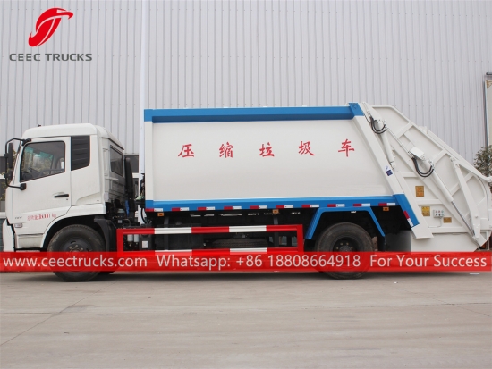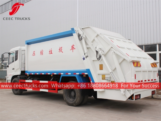 รถบรรทุกขยะอัดอากาศยี่ห้อ Dongfeng ความจุ 14 ลูกบาศก์เมตร ตัวถังรถบรรทุกใช้เครื่องยนต์ดีเซล CUMMINS 190 แรงม้า เกียร์ธรรมดา 6 เกียร์ กล่องควบคุม PLC ของเทคโนโลยี Siemens สำหรับการใช้งานที่ง่ายดาย งานพ่นสีและโลโก้ทั้งหมดขึ้นอยู่กับความต้องการของลูกค้า