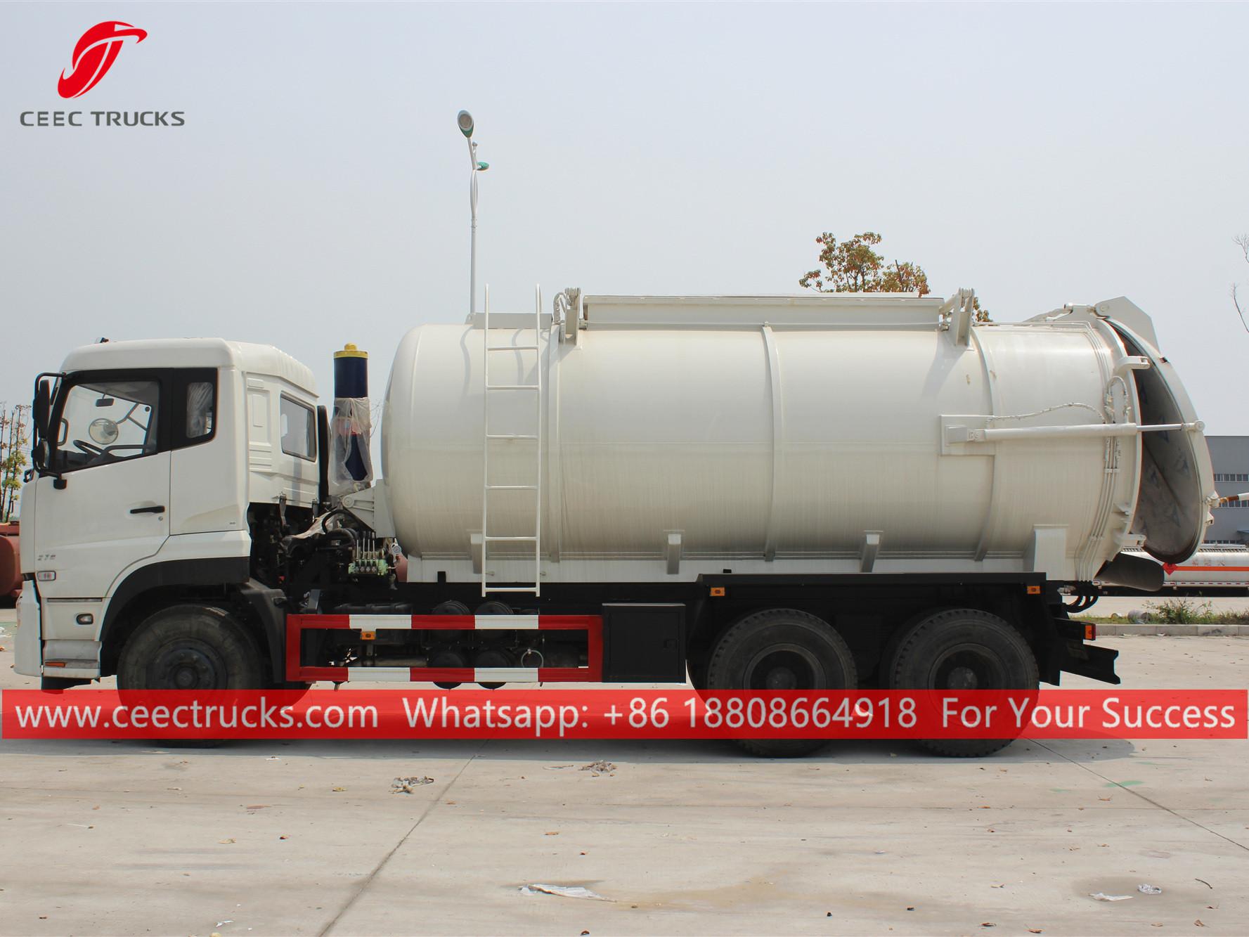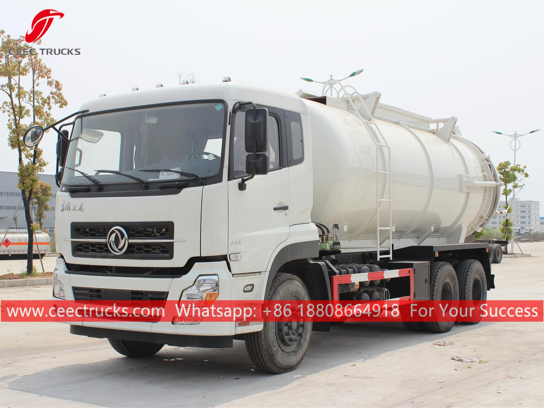 รถบรรทุกสูญญากาศ Dongfeng 20cbm รุ่นพวงมาลัยซ้าย แชสซีส์ 6x4 เกียร์ธรรมดา 9 เกียร์ FAST เครื่องยนต์ดีเซล CUMMINS 270HP งานสีและโลโก้ขึ้นอยู่กับข้อกำหนด