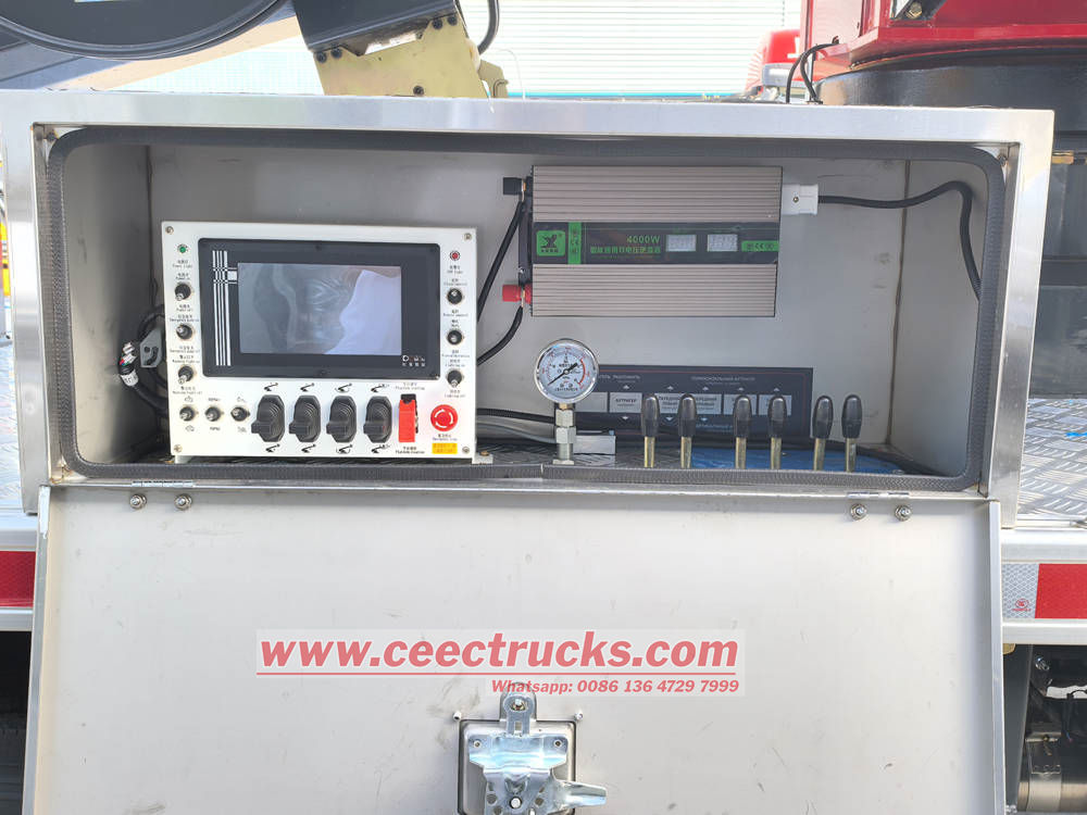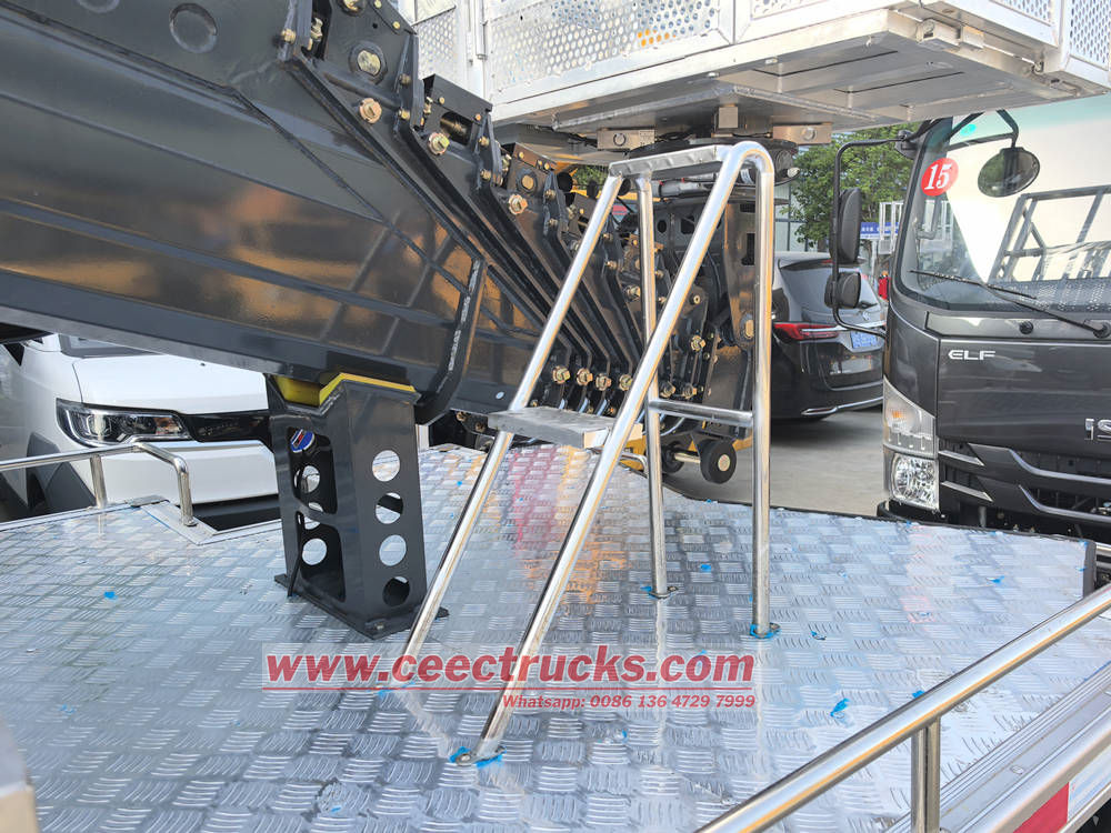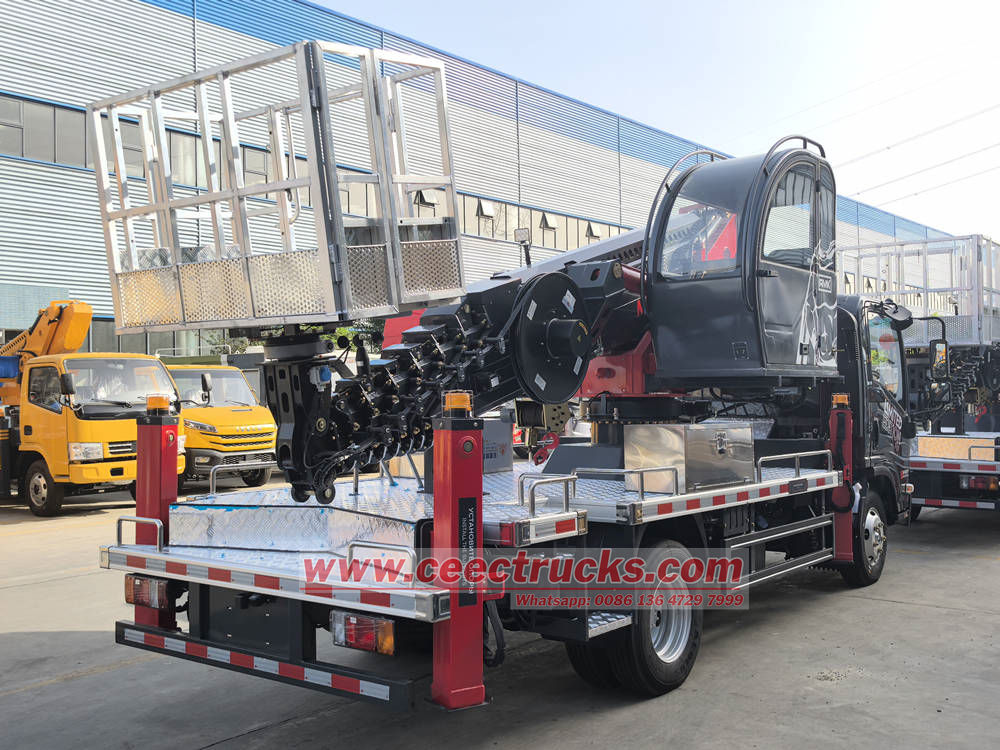 รถบรรทุกกระเช้าไฟฟ้า Isuzu KV100 ใช้การออกแบบแขนยืดหดหลายส่วนพร้อมมุมขยายขนาดใหญ่และการทำงานที่ยืดหยุ่น และสามารถไปถึงความสูงที่อุปกรณ์ทั่วไปเข้าถึงได้ยากได้อย่างง่ายดาย ระบบปฏิบัติการบนแพลตฟอร์มนั้นเรียบง่ายและชัดเจน พร้อมโหมดการทำงานหลายโหมด เช่น การทำงานด้วยไฟฟ้า รีโมทคอนโทรลภาคพื้นดิน ตัวควบคุมในตะกร้า และคันโยกควบคุมฉุกเฉิน ช่วยให้มั่นใจถึงความปลอดภัยและประสิทธิภาพของผู้ปฏิบัติงาน