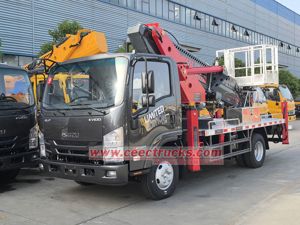 รถบรรทุกกระเช้าทำงานบนที่สูง Isuzu KV100 เป็นอุปกรณ์ทำงานบนที่สูงที่ทันสมัยและมีประสิทธิภาพ ซึ่งใช้กันอย่างแพร่หลายในการก่อสร้าง การบริหารเทศบาล ไฟฟ้า การสื่อสาร ดับเพลิง และสาขาอื่นๆ