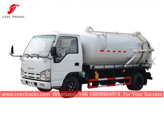 รถบรรทุกดูดน้ำเสีย 4CBM อีซูซุ-อีกด้วยเรียกว่ารถบรรทุกถังเก็บน้ำเสียแบบสุญญากาศ ISUZU, รถบรรทุกดูดน้ำเสีย ISUZU, รถบรรทุกถังบำบัดน้ำเสียแบบสุญญากาศ 4*2, รถบรรทุกบำบัดน้ำเสีย ISUZU สำหรับขาย, รถบรรทุกถังเก็บน้ำเสียแบบสุญญากาศขนาดเล็ก, รถบรรทุกดูดอุจจาระราคาถูก)เป็นใช้ในการรวบรวม ขนส่ง และระบายของเหลว เช่น น้ำสกปรก ตะกอน บ่อเกรอะ น้ำมันดิบ และของแข็ง เช่น หินก้อนเล็ก อิฐ เป็นต้น เหมาะสำหรับทำความสะอาดท่อระบายน้ำ บ่อเกรอะ บ่อเกรอะ ร่องน้ำ ฯลฯ ใช้กันอย่างแพร่หลายในด้านสิ่งแวดล้อมและสุขาภิบาล