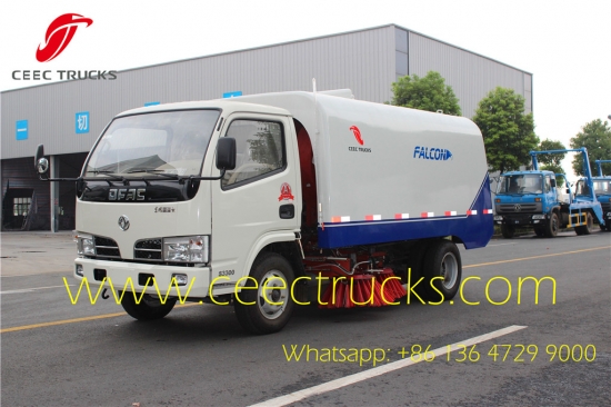 เครื่องกวาดถนน Dongfeng 4CBM ถังขยะสิ่งแวดล้อม 4cbm และถังน้ำ 1cbm เครื่องกวาดถนนเชิงกล DONGFENG ระบบถังสแตนเลส เครื่องยนต์ 95HP เกียร์ธรรมดา 5 เกียร์
