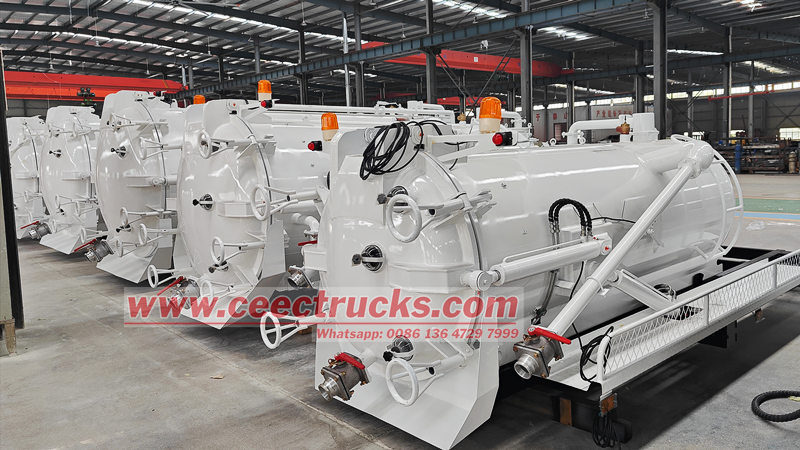 ชุดตัวถังรถบรรทุกปั๊มบำบัดน้ำเสีย 8CBM พร้อมปั๊ม Jurop (เรียกอีกอย่างว่าโครงสร้างส่วนบนของรถบรรทุกปั๊มดูดสูญญากาศ 8CBM, ตัวถังส่วนบนของรถบรรทุกปั๊มดูดตะกอน, ตัวถังส่วนบนของรถบรรทุกถังสูญญากาศ, ชุดตัวถังส่วนบนของรถบรรทุกปั๊มบำบัดน้ำเสีย 8CBM, ตัวถังส่วนบนของรถบรรทุกดูดน้ำเสีย) ใช้สำหรับติดตั้งบนตัวถังเพื่อทำความสะอาดและรวบรวมของเหลวต่างๆ เช่น น้ำสกปรก ตะกอน บ่อเกรอะ และน้ำมันดิบ เหมาะสำหรับทำความสะอาดท่อระบายน้ำ บ่อเกรอะ บ่อเกรอะ ร่องน้ำ ฯลฯ นิยมใช้กันอย่างแพร่หลายในด้านสิ่งแวดล้อมและสุขาภิบาล