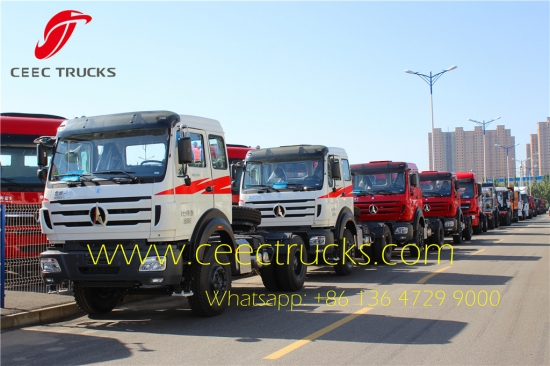 รถบรรทุกหัวลาก Beiben 2538 สำหรับประเทศคองโกรถบรรทุกลากจูง North Benz 380HP 6*4 เป็นรถแทรกเตอร์ Beiben ที่ขายดีที่สุด ลูกค้าจากประเทศคองโก กานา ซิมบับเว เคนยา และโตโกนิยมเลือกหัวแทรกเตอร์เบเบน 2538จาก CEEC TRUCKS เราเป็นซัพพลายเออร์รถบรรทุก beiben ที่ได้รับอนุญาต และราคาหัวลาก beiben 2534, 2538 นั้นค่อนข้างต่ำกว่าซัพพลายเออร์รถบรรทุก beiben รายอื่นๆ ในยุโรปและประเทศในเอเชีย เพื่อตอบสนองความต้องการของลูกค้าทั้งหมด เราจึงจัดหาหัวลากขนาด 4*2 และ 6*4 และความสามารถในการลากจูงที่กำหนดได้คือ 30 ตัน 40 ตัน 50 ตัน 70 ตัน และ 100 ตัน ด้านล่างนี้คือรุ่นที่แนะนำสำหรับหัวลาก beiben: