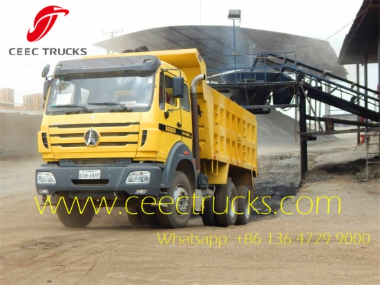 รถบรรทุกพ่วงทรงพลัง beiben 2642 NG80 420HP ส่งออกไปยังประเทศคองโกปวงต์นัวร์ ซึ่งใช้แชสซีส์เทคโนโลยีเบนซ์ กระปุกเกียร์ธรรมดา 12 เกียร์ที่รวดเร็ว ตัวถังดัมพ์ทำจากวัสดุเหล็กกล้าคาร์บอน Q345 อุปกรณ์ยก HYVA ส่งออกไปยังประเทศต่างๆ ในแอฟริกาอย่างกว้างขวาง