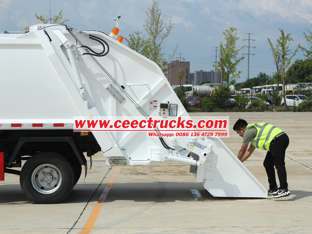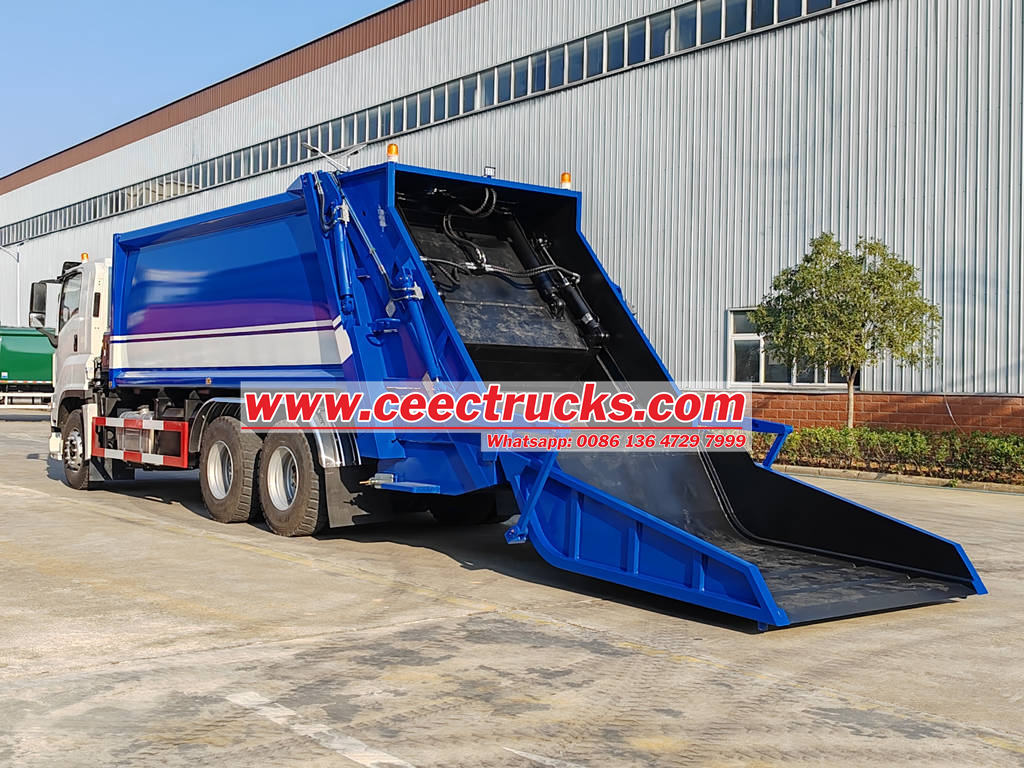 กลไกถังเก็บขยะขนาดใหญ่ใช้ในรถบรรทุกขยะอัดของอีซูซุสำหรับการจัดการขยะจำนวนมาก กลไกถังเก็บขยะขนาดใหญ่ได้รับการออกแบบให้มีพื้นที่ขนาดใหญ่เพื่อรองรับขยะจำนวนมากในคราวเดียว ช่วยเพิ่มประสิทธิภาพในการรวบรวม กลไกถังเก็บขยะขนาดใหญ่ติดตั้งระบบควบคุมไฮดรอลิก ช่วยให้พลิกและขนถ่ายขยะได้อย่างราบรื่น นอกจากนี้ยังมีประสิทธิภาพการปิดผนึกที่ดี ช่วยป้องกันขยะกระจัดกระจายและกลิ่นฟุ้งกระจายระหว่างการขนส่งได้อย่างมีประสิทธิภาพ