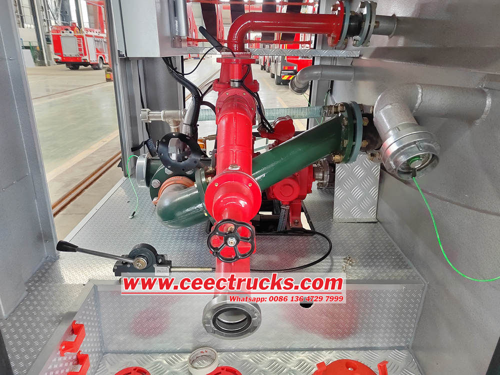 แผงควบคุมการทำงานของปั๊มน้ำเป็นภาษาอังกฤษ บังโคลนควรเป็นสีดำ พร้อมไฟสัญญาณเตือน บันไดแบบถอดออกได้ กล่องอุปกรณ์ด้านท้ายตัวถังอยู่ใต้ทิศทางการเอียงขึ้นด้านบนประมาณ 45 องศา อินเทอร์เฟซทั้งหมดของรถและอุปกรณ์เสริมเป็นของอังกฤษ พร้อมท่อแรงดันสูงสีดำม้วนละ 30 ม. |