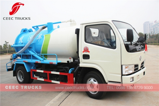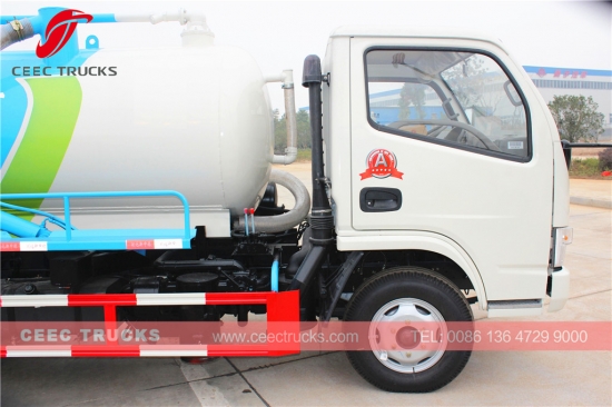 รถบรรทุกดูดสิ่งปฏิกูล Dongfeng 4000L ใช้เครื่องยนต์ดีเซล CHAOCHAI 95 แรงม้า เกียร์ธรรมดา 5 สปีด ถังเก็บทำจากเหล็กกล้าความแข็งแรงสูง ขนาด 4 ลูกบาศก์เมตร ปั๊มสุญญากาศ WEILONG เป็นมาตรฐาน พร้อมตัวเลือกปั๊มสุญญากาศจากอิตาลี การทาสีและโลโก้ขึ้นอยู่กับความต้องการของลูกค้า