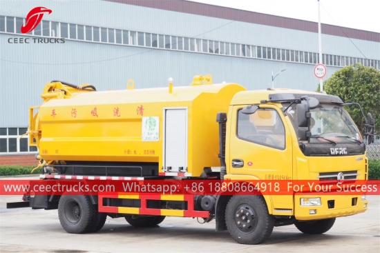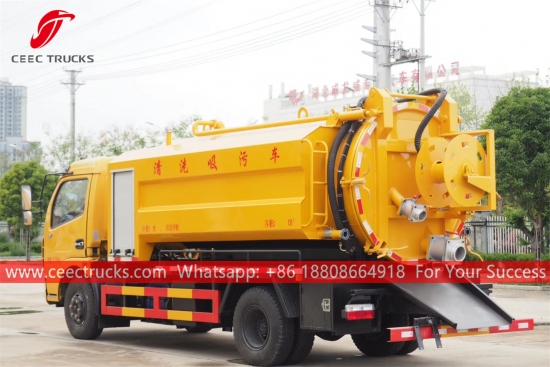 รถบรรทุกฉีดน้ำเสียแบบผสม 6CBM คุณภาพดี แชสซี Dongfeng 4x2 LHD เกียร์ธรรมดา 6 เกียร์ เครื่องยนต์ดีเซล YUCHAI 150HP ปั๊มฉีดน้ำแรงดันสูงและปั๊มสุญญากาศของแบรนด์ดัง งานพ่นสีและโลโก้ทั้งหมดขึ้นอยู่กับความต้องการ