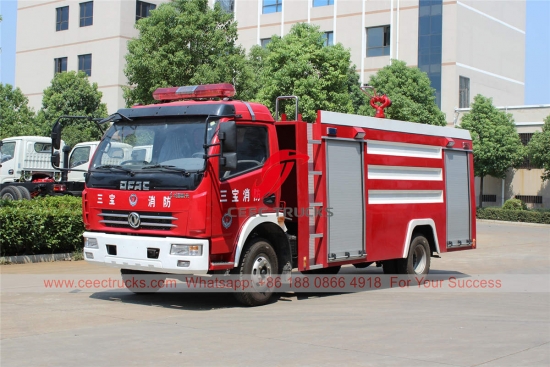 รถดับเพลิงโฟมน้ำ Dongfeng ถังน้ำขนาด 4,000 ลิตร และถังโฟมขนาด 1,000 ลิตร แชสซี Dongfeng 4x2 LHD/RHD เกียร์ธรรมดา 5 สปีด เครื่องยนต์ดีเซล Chaochai 160 แรงม้า งานพ่นสีและโลโก้ขึ้นอยู่กับข้อกำหนด
