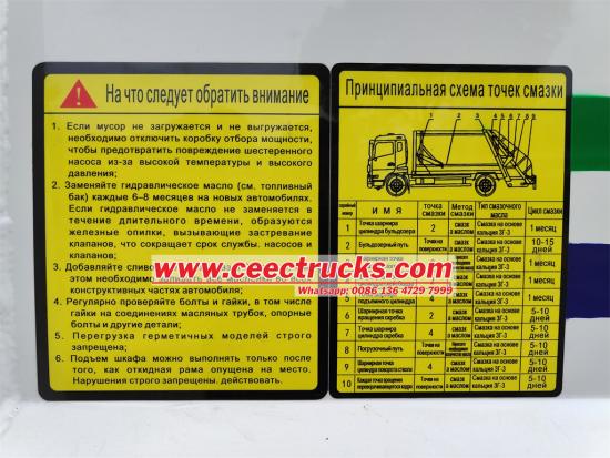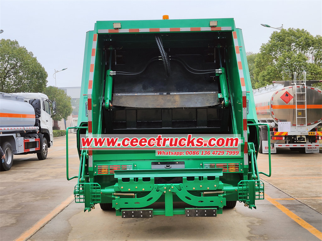 รถบรรทุกอัดแบบ 4x2 ด้านหลังติดตั้งระบบควบคุม CAN ที่ออกแบบใหม่ ระบบอัดขยะแบบมัลติฟังก์ชัน บันไดปีนด้านข้าง กล่องควบคุมไฟฟ้าในห้องโดยสารและด้านหลังของถังเก็บ ส่วนด้านหลังติดตั้งแป้นเหยียบ ซึ่งปรับแต่งมาเพื่อเก็บขยะจากพื้นที่ต่างๆ ถังเก็บน้ำเสีย 2 หน่วยสามารถป้องกันมลพิษที่สองได้อย่างมีประสิทธิภาพในระหว่างการขนส่ง ห้องโดยสารสำหรับเบาะนั่งแถวเดียวที่สบาย ให้สัมผัสการขับขี่ที่ดี ดังนั้น รถคันนี้จึงเป็นรถบรรทุกถังเชื้อเพลิงที่เหมาะสำหรับการขนส่งน้ำมันและเติมน้ำมันโดยเฉพาะ