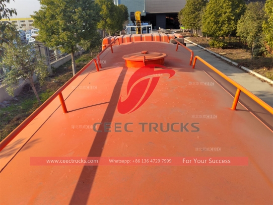 รถบรรทุกซีอีซีรถบรรทุกน้ำประกอบด้วยตัวถัง ถัง ปั๊ม วาล์ว ท่อน้ำ เครื่องพ่นน้ำ และชิ้นส่วนอื่นๆ เป็นหลัก รถบรรทุกน้ำทำจากแผ่นเหล็กกล้าคาร์บอนคุณภาพสูง