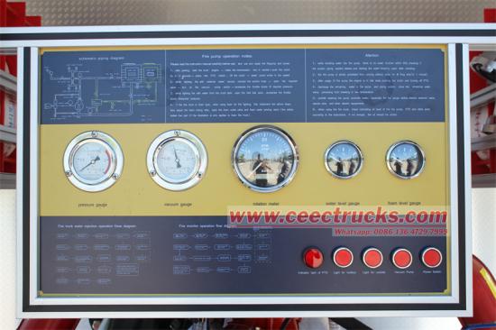 ●แผงควบคุม :มาตรวัดรอบเครื่องยนต์แบบบูรณาการ (ตรวจสอบความเร็วเครื่องยนต์), มาตรวัดสุญญากาศ (ตรวจจับสุญญากาศของปั๊ม), มาตรวัดแรงดัน (แสดงแรงดันน้ำแบบเรียลไทม์), มาตรวัดระดับโฟม (แสดงปริมาณของเหลวโฟมที่เหลืออยู่), มาตรวัดระดับน้ำ (แสดงระดับน้ำของถังน้ำ)