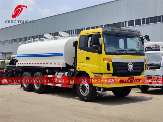 รถบรรทุกน้ำ FOTON ขนาด 20,000 ลิตร แชสซี FOTON 6x4 เกียร์ธรรมดา 9 เกียร์ FAST เครื่องยนต์ดีเซล WEICHAI 270 แรงม้า ปั๊มน้ำยี่ห้อดัง พร้อมหัวฉีดฉีดพ่นด้านหน้า ตรงกลาง และด้านหลังตามตัวเลือก งานพ่นสีและโลโก้ทั้งหมดขึ้นอยู่กับความต้องการ