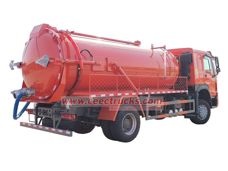 ท่อดูดสามารถติดตั้งหัวฉีดหรือตัวกรองได้หลากหลายรูปแบบ เพื่อตอบสนองความต้องการในการดูดที่หลากหลาย เช่น ท่อส่งน้ำและถังบำบัดน้ำเสีย รถดูดสูญญากาศ HOWO ยังมีวาล์วระบายน้ำล้นที่จะปิดทางเข้าอากาศโดยอัตโนมัติเมื่อระดับของเหลวในถังใกล้ถึงขีดจำกัดสูงสุด เพื่อป้องกันการไหลย้อนกลับของน้ำเสียและความเสียหายต่อปั๊มสุญญากาศ