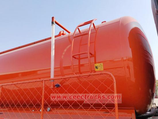 ถังเหล็กกล้าคาร์บอนความแข็งแรงสูงมีความทนทานและปิดผนึกอย่างดี มาพร้อมปั๊มสุญญากาศกำลังสูง โดดเด่นด้วยแรงดูดที่แรงและแรงยกแนวตั้งสูง ช่วยให้สามารถดูดตะกอนน้ำเสียและอุจจาระจากถังบำบัดน้ำเสียได้อย่างรวดเร็ว รถบรรทุกถังทำความสะอาดสิ่งปฏิกูล Howo นอกจากนี้ยังมีคุณสมบัติดูดและถ่ายของเหลวออกเองได้ ทำให้ใช้งานง่ายและมีประสิทธิภาพ ช่วยเพิ่มประสิทธิภาพการทำงานได้อย่างมาก ถือเป็นส่วนเสริมที่มีคุณค่าสำหรับระบบสุขาภิบาลเทศบาล ระบบบำบัดน้ำเสีย และอุตสาหกรรมอื่นๆ