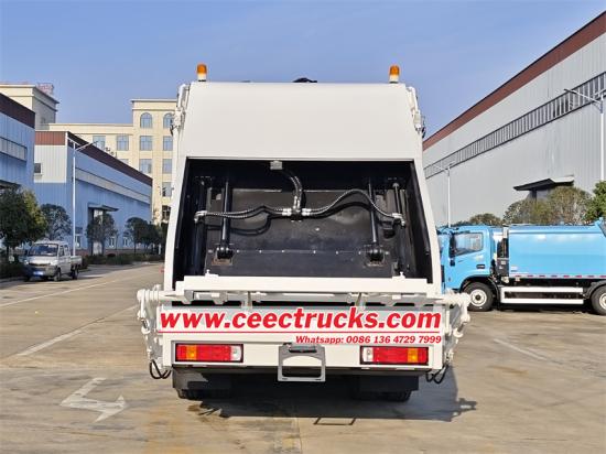 ถังขยะขนาด 20 ลูกบาศก์เมตร: รถขนขยะคันนี้มีถังขยะขนาด 20 ลูกบาศก์เมตรที่มีความจุขนาดใหญ่เพื่อรองรับความต้องการขยะในเมืองจำนวนมาก ถังขยะได้รับการออกแบบมาอย่างเหมาะสมเพื่ออำนวยความสะดวกในการโหลดและบีบอัดขยะ และเพิ่มประสิทธิภาพการทำงาน