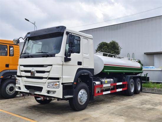 รถบรรทุกน้ำ HOWO 6x4 สร้างขึ้นบนแชสซีสำหรับงานหนักของ HOWO มาพร้อมถังน้ำเหล็กกล้าคาร์บอนขนาด 20,000 ลิตร และปั๊มน้ำกำลังสูง มีฟังก์ชั่นหลากหลาย เช่น การดูดน้ำอัตโนมัติ การล้างด้านหน้า การฉีดพ่นด้านหลัง การฉีดพ่นด้านข้าง และปืนฉีดน้ำแรงดันสูง ด้วยความจุขนาดใหญ่และประสิทธิภาพสูง รถบรรทุกสามารถดูดน้ำอัตโนมัติจากถังเต็มได้ภายในเวลาไม่ถึง 15 นาที จึงเหมาะอย่างยิ่งสำหรับงานต่างๆ เช่น การล้างถนน การชลประทานพื้นที่สีเขียว การกำจัดฝุ่น และการฉีดพ่นยาฆ่าแมลง รถบรรทุกน้ำ HOWO 6x4 นี้เป็นยานพาหนะอเนกประสงค์สำหรับทั้งงานสุขาภิบาลในเมืองและโครงการก่อสร้าง