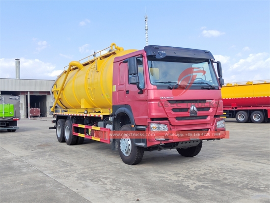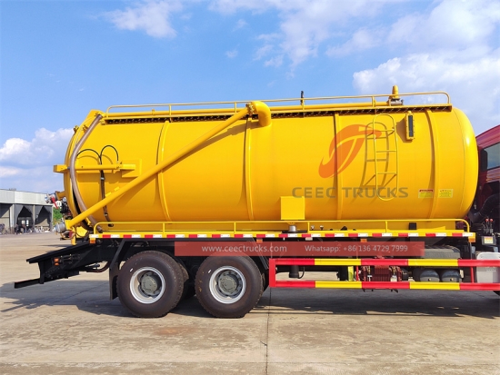 รถบรรทุกถังสุญญากาศ HOWO 400 แรงม้า (เรียกอีกอย่างว่า รถบรรทุกดูดน้ำเสีย, รถดูดน้ำเสีย, รถบรรทุกน้ำเสีย HOWO, รถบรรทุกถังส้วม, รถบรรทุกถังส้วมดูดน้ำเสีย) เป็นยานพาหนะสำหรับงานหนักที่ออกแบบมาโดยเฉพาะสำหรับการรวบรวมและขนส่งน้ำเสียและน้ำเสีย รถบรรทุกถัง HOWO ติดตั้งระบบสูญญากาศอันทรงพลังที่ช่วยให้สามารถดูดน้ำเสียจากแหล่งต่างๆ ได้อย่างมีประสิทธิภาพ เช่น ท่อระบายน้ำ ท่อระบายน้ำเสีย และห้องน้ำ ระบบนี้ทำงานโดยสร้างแรงดูดที่แข็งแกร่งซึ่งสร้างขึ้นโดยปั๊มสูญญากาศซึ่งจะดึงน้ำเสียเข้าไปในถัง กระบวนการนี้ได้รับการอำนวยความสะดวกโดยท่อและอุปกรณ์ต่อพิเศษที่เชื่อมต่อกับรถบรรทุกและแหล่งน้ำเสีย