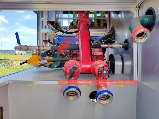 3.ตัวถังรถบรรทุก: ปรับแต่งสำหรับน้ำ + โฟม + สารดับเพลิงผงแห้ง