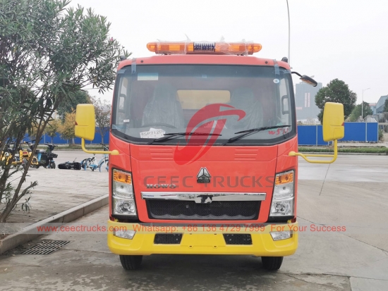 รถบรรทุกกวาดถนน HOWO 5,000 ลิตร แชสซี HOWO 4x2 พวงมาลัยขวา เกียร์ธรรมดา 6 เกียร์ เครื่องยนต์ดีเซล YUNNEI 116 แรงม้า ถังขยะสแตนเลสและตัวถังน้ำสะอาด ระบบแปรง 4 อันพร้อมมอเตอร์อิตาลี พร้อมระบบควบคุมไฟฟ้าในห้องโดยสารเพื่อการใช้งานที่สะดวก งานพ่นสีและโลโก้ทั้งหมดขึ้นอยู่กับความต้องการ.