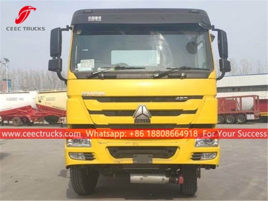 หัวลาก SINOTRUK HOWO 6x4 เครื่องยนต์ดีเซล SINOTRUK 420 แรงม้า เกียร์ธรรมดา 10 เกียร์ น้ำหนักลากจูงสูงสุดสามารถได้ถึง 70,000 กก. งานพ่นสีและโลโก้ขึ้นอยู่กับข้อกำหนด