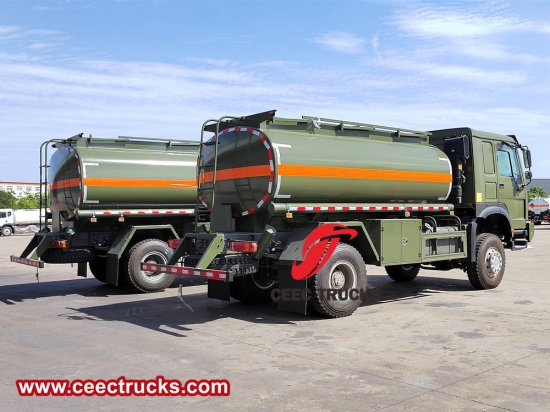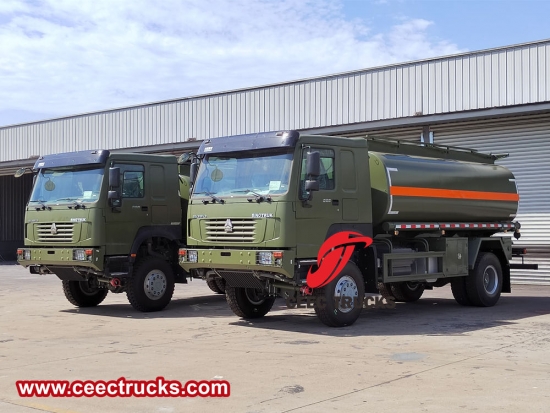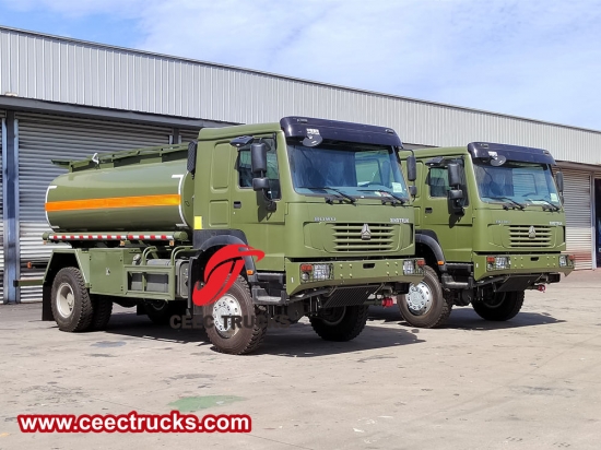 รถบรรทุกน้ำมันดีเซลเคลื่อนที่ขับเคลื่อน 4x4 ของ Howo เป็นรถเติมน้ำมันเคลื่อนที่ที่สะดวกและมีประสิทธิภาพซึ่งสามารถเติมน้ำมันให้ยานพาหนะได้ทุกเมื่อทุกที่โดยที่รถไม่จำเป็นต้องขับเข้าไปที่ปั๊มน้ำมัน ช่วยประหยัดเวลาและพื้นที่
