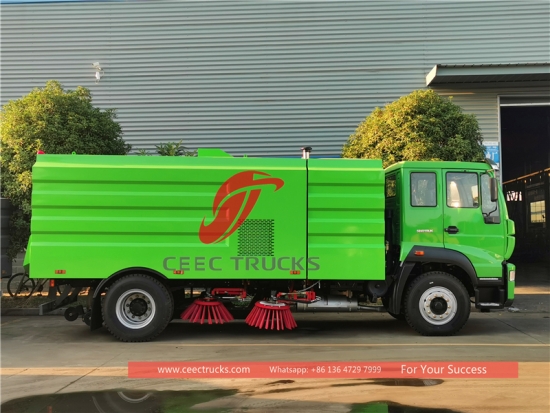 รถบรรทุกกวาดถนน HOWO 5,000 ลิตร แชสซี HOWO 4x2 พวงมาลัยซ้าย ระบบปฏิบัติการเทคโนโลยียุโรป ถังขยะสแตนเลสและตัวถังน้ำสะอาด ระบบแปรง 4 อันพร้อมมอเตอร์อิตาลี พร้อมระบบควบคุมไฟฟ้าในห้องโดยสารเพื่อการใช้งานที่สะดวก งานพ่นสีและโลโก้ทั้งหมดขึ้นอยู่กับความต้องการ.