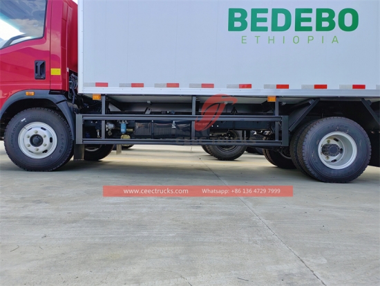 HOWO รถตู้บรรทุกตู้เย็น 5 ตัน -อีกด้วยเรียกว่ารถบรรทุกห้องเย็น HOWO, รถบรรทุกห้องแช่แข็ง HOWO, รถบรรทุกห้องเย็น HOWO, HOWOรถบรรทุกเครื่องทำความเย็น,รถบรรทุกตู้แช่ HOWO)ใช้สำหรับขนส่งสินค้าที่ต้องแช่เย็นหรือควบคุมอุณหภูมิ เช่น อาหาร ยา หรือสินค้าเน่าเสียง่ายอื่นๆ รถตู้เหล่านี้ได้รับการออกแบบเป็นพิเศษและติดตั้งผนังฉนวน หน่วยทำความเย็น และระบบควบคุมอุณหภูมิเพื่อรักษาอุณหภูมิของสินค้าให้คงที่ตามต้องการระหว่างการขนส่ง