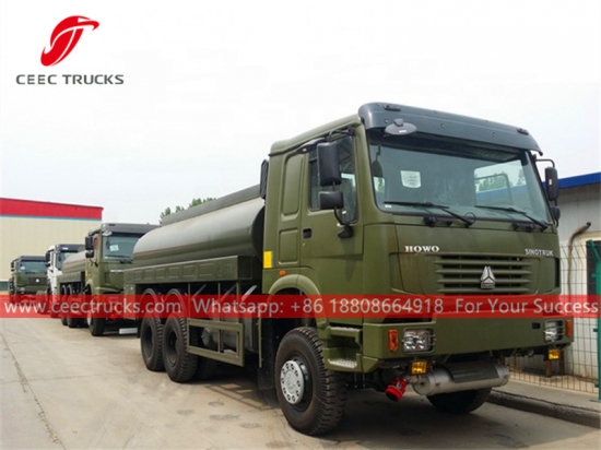 รถบรรทุกขนส่งน้ำมันเชื้อเพลิง HOWO 6x6-อีกด้วยเรียกว่ารถบรรทุกน้ำมัน HOWO 6x6 ออฟโรด, รถบรรทุกน้ำมันขับเคลื่อนสี่ล้อ HOWO, รถบรรทุกส่งน้ำมันดีเซล HOWO RHD 6x6 Euro 2, HOWO 6×6 รถบรรทุกน้ำมัน 20,000 ลิตร ผู้ผลิตรถบรรทุกเติมน้ำมัน HOWO รถบรรทุกขนส่งดีเซลออฟโรด HOWO HOWO 6×6 รถบรรทุกเติมน้ำมันแบบขับเคลื่อนสี่ล้อ)เป็นใช้ในการขนส่งน้ำมันดีเซล น้ำมันเบนซิน น้ำมันก๊าด ฯลฯ.