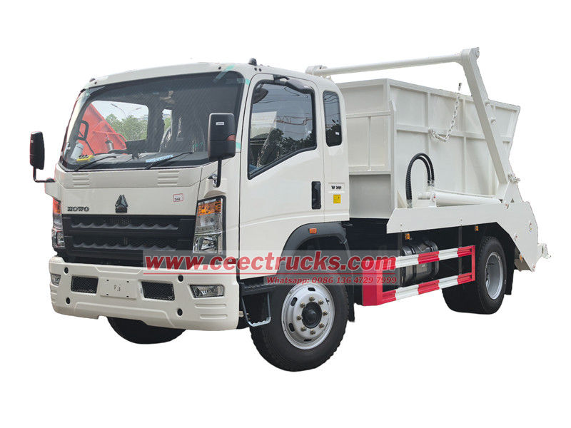 รถบรรทุกขยะแบบ Skip-loader HOWO ขนาด 6 ลูกบาศก์เมตร เป็นยานพาหนะพิเศษที่ใช้กันอย่างแพร่หลายในงานสุขาภิบาลและงานขนถ่ายขยะในเมือง ดัดแปลงมาจากแชสซี HOWO 4x2 RHD ระยะฐานล้อ 4,500 มม. พร้อมระบบปรับอากาศ USB และระบบช่วยควบคุมทิศทาง ขับเคลื่อนด้วยเครื่องยนต์ดีเซล Cummins ISF3.8S3154 154 แรงม้า เกียร์ธรรมดา 6 เกียร์ ระบบสวิงอาร์มเหล็กกล้าความแข็งแรงสูง อุปกรณ์ควบคุมไฮดรอลิก และกล่องควบคุมไฟฟ้า (อุปกรณ์เสริม) งานพ่นสีและโลโก้ทั้งหมดขึ้นอยู่กับความต้องการ