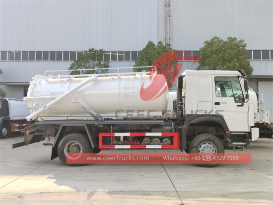 รถบรรทุกถังสุญญากาศ HOWO 4×4 (เรียกอีกอย่างว่า รถบรรทุกดูดน้ำเสีย Howo 4x4, เครื่องดูดน้ำเสีย, รถบรรทุกน้ำเสีย HOWO 4x4, เครื่องดูดน้ำเสียในร่อง, รถบรรทุกถังส้วม, เครื่องดูดน้ำเสีย) ใช้ในการรวบรวม ขนส่ง และระบายของเหลว เช่น น้ำสกปรก ตะกอน บ่อเกรอะ น้ำมันดิบ และของแข็ง เช่น หินก้อนเล็ก อิฐ เป็นต้น เหมาะสำหรับทำความสะอาดท่อระบายน้ำ บ่อเกรอะ บ่อเกรอะ ร่องน้ำ ฯลฯ ใช้กันอย่างแพร่หลายในด้านสิ่งแวดล้อมและสุขาภิบาล