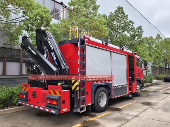 รถดับเพลิงไฟฉุกเฉิน Howo สร้างขึ้นบนแชสซี Howo C5H ระดับพรีเมียม ผสานพลังที่เหนือกว่าเข้ากับการปล่อยมลพิษที่เป็นมิตรต่อสิ่งแวดล้อม ด้วยระบบขับเคลื่อนสี่ล้อ จึงสามารถรับมือกับสภาพถนนที่ท้าทายได้ทุกประเภท มาพร้อมระบบผลิตไฟฟ้าอิสระและระบบไฟฉุกเฉิน ให้แสงสว่างรอบทิศทางหลายมุม เพื่อส่องสว่างเส้นทางกู้ภัยได้อย่างรวดเร็วในกรณีเกิดเพลิงไหม้ แผงควบคุมมีภาษาให้เลือกใช้และตัวเลือกการกำหนดค่าที่หลากหลายเพื่อตอบสนองความต้องการที่หลากหลาย รถดับเพลิงกู้ภัย Howo ยังติดตั้งเครนบูมพับได้ขนาด 6 ตันที่ด้านหลังสำหรับการยกของหนัก 3 เชือกลากไฟฟ้ายาว 35 เมตร อยู่ด้านหน้าห้องโดยสาร