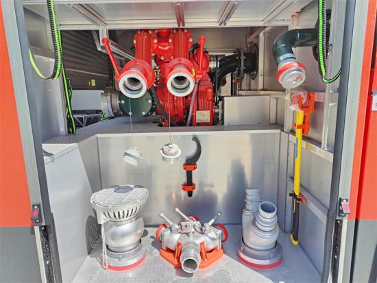 ปั๊มดับเพลิงประสิทธิภาพสูง– มีปั๊มดับเพลิง CB10/80 ที่มีปริมาณน้ำ 4,800 ลิตร/นาที ที่แรงดัน 10 บาร์ ช่วยให้ระบายน้ำ/โฟมได้อย่างมีประสิทธิภาพและเชื่อถือได้ ปั๊มดับเพลิงยี่ห้อ Darley และ HALE สามารถเลือกใช้ได้
