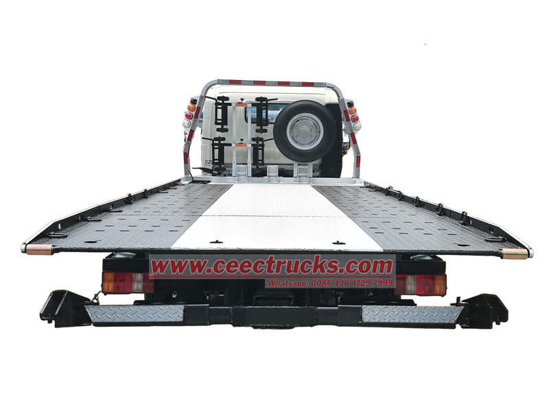 ● อุปกรณ์ยก: ติดตั้งด้วยขายึดด้านหน้าและขายึดด้านหลัง ยางของรถที่ชำรุดจะได้รับการยึดด้วยหมุดสปริง หมุด และซิปยึดเพื่อให้แน่ใจว่ารถมีเสถียรภาพระหว่างการขนส่ง