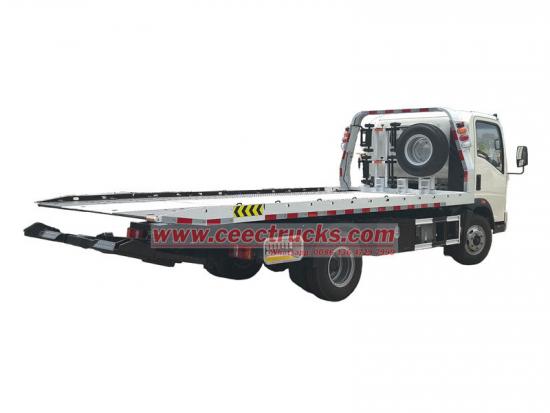 รถลากจูงแบบพื้นเรียบสำหรับงานเบา Howo เป็นรถลากจูงแบบมืออาชีพที่ดัดแปลงมาจากแชสซีส์เบา Howo RHD ฐานล้อ 3360 มม. เครื่องปรับอากาศ USB และระบบช่วยควบคุมทิศทาง ติดตั้งเครื่องยนต์ดีเซล Cummins ISF3.8S3141 141 แรงม้า 4 สูบเรียง รถบรรทุกมีแพลตฟอร์มรับน้ำหนัก 4 ตัน พร้อมรอก 21 ม. และขายึดล้อ