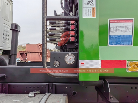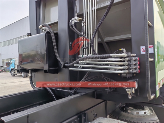 ประกอบด้วยถังเก็บขยะแบบปิดสนิท ระบบไฮดรอลิก ระบบควบคุม รถบรรทุกทั้งหมดเป็นแบบปิดสนิท สามารถบีบอัดและทิ้งขยะได้โดยอัตโนมัติ และน้ำเสียที่เกิดขึ้นในกระบวนการบีบอัดทั้งหมดจะไหลเข้าไปในถังเก็บน้ำเสีย |