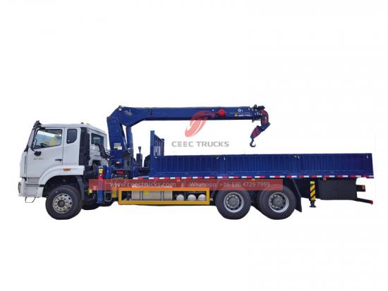 The crane weight is 357 0kg and the installation space is 13 50mm. The control panel can be selected in English or other languages to facilitate users with different needs. Howo cargo truck mounted 14tons crane also provides a variety of optional configurations, such as telescopic boom cranes, hydraulic dump boxes, box thickness and height customized according to needs, and optional remote control boxes.