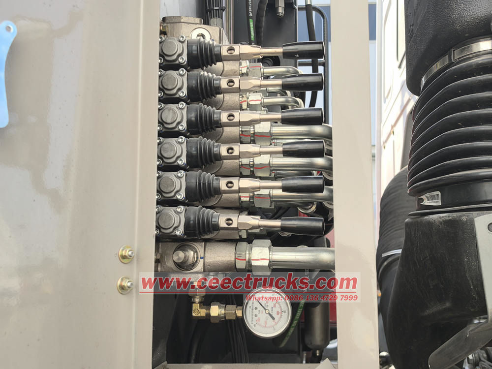 ● รถบรรทุกขยะแบบตักท้าย HOWO อาศัยเครื่องยนต์เพื่อจ่ายพลังงานซึ่งส่งไปยังปั๊มน้ำมันผ่านชุดส่งกำลังและเพลาส่งกำลัง ปั๊มน้ำมันหมุนเพื่อสร้างน้ำมันแรงดันสูง ผู้ปฏิบัติงานควบคุมสวิตช์บนวาล์วเปลี่ยนทิศทางหลายทางเพื่อให้น้ำมันไฮดรอลิกขับเคลื่อนกระบอกสูบที่เกี่ยวข้องเพื่อทำงาน จากนั้นจึงขับเคลื่อนกลไกที่เกี่ยวข้องเพื่อดำเนินการให้เสร็จสมบูรณ์