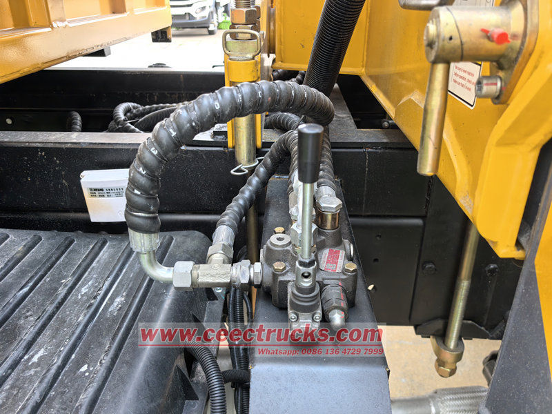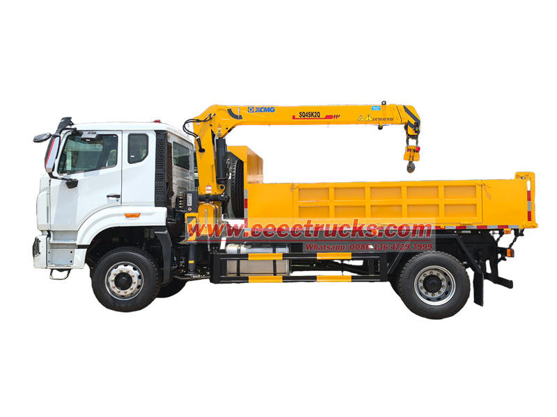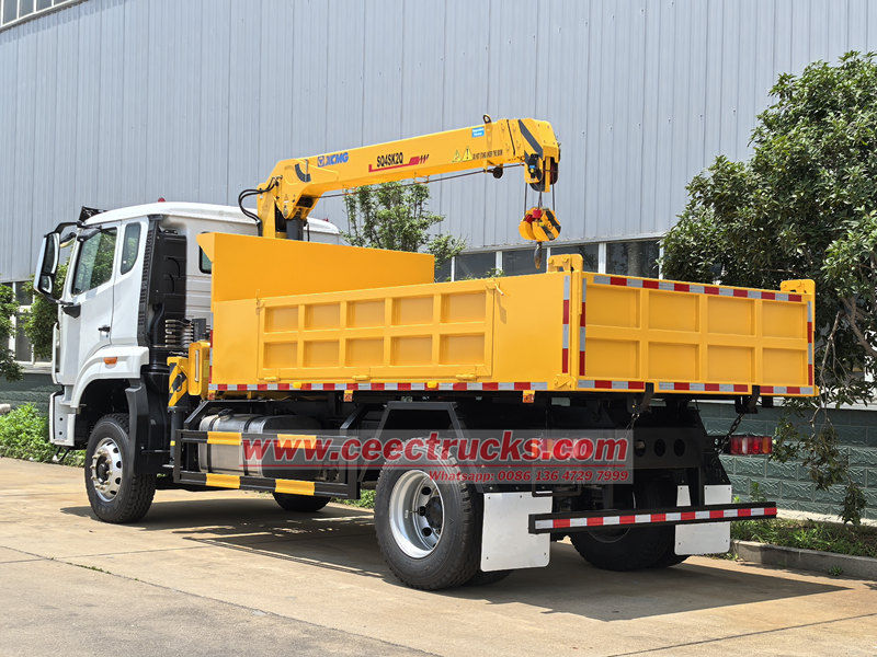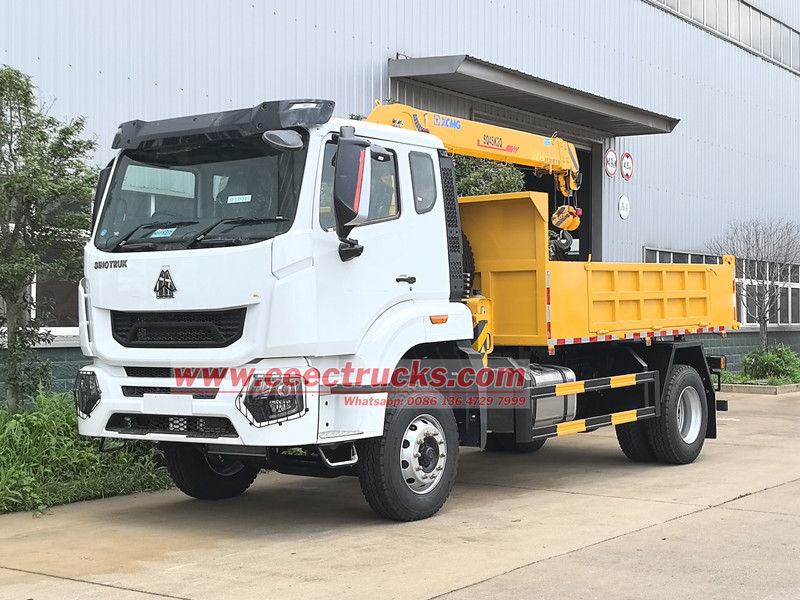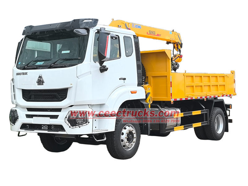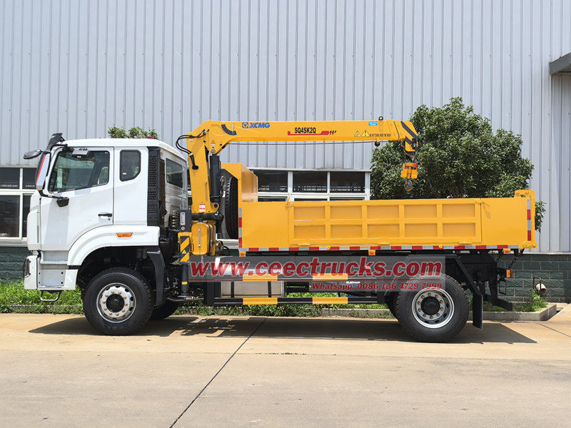 เครนติดตั้งบนรถบรรทุกเพลาเดียว HOWO ขนาด 4 ตัน เหมาะสำหรับการใช้งานในงานก่อสร้าง โลจิสติกส์ โครงสร้างพื้นฐาน เหมืองแร่ และสาขาอื่นๆ ตัวรถได้รับการดัดแปลงบนแชสซี HOWO ระยะฐานล้อ 4,600 มม. ติดตั้งเครื่องยนต์ WEICHAI WP10.300E22 300 แรงม้า และเกียร์ HW13710 10 สปีด ส่วนบนเป็นตู้บรรทุกสินค้าขนาด 3,800×2,400×450 มม. และเครน XCMG SQ4SK2Q ซึ่งสามารถยกน้ำหนักได้ 4 ตัน เครนสามารถควบคุมด้วยคันโยกไฮดรอลิกแบบแมนนวลทั้งสองด้าน เพื่อควบคุมการหดและการยืดของขาค้ำยัน รวมถึงการหดและหมุนของเครน