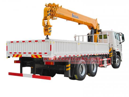 รถบรรทุก Howo พร้อมเครนยก 12 ตันที่ผลิตโดย CEEC เหมาะสำหรับการก่อสร้าง โลจิสติกส์ โครงสร้างพื้นฐาน เหมืองแร่ และสาขาอื่นๆ ยานพาหนะได้รับการดัดแปลงบนแชสซี HOWO NX ระยะฐานล้อ 4,600+1,400 มม. ติดตั้งเครื่องยนต์ WEICHAI WP10.380E22 380HP และเกียร์ HW19710 10 สปีด ส่วนบนเป็นกล่องบรรทุกขนาด 6,500×2,300×450 มม. และเครน XCMG GSQS300 ซึ่งสามารถยกน้ำหนักได้ 12 ตัน เครนสามารถควบคุมด้วยคันโยกไฮดรอลิกแบบแมนนวลทั้งสองด้านเพื่อควบคุมการหดและยืดของขาตั้ง และการหดและหมุนของเครน