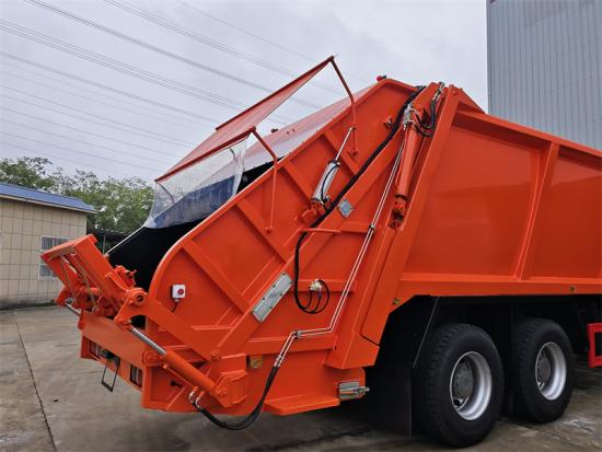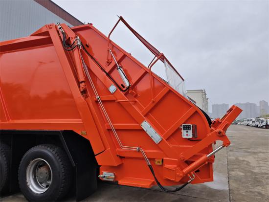 HOWO HW76, NX cabin is optionalรถบรรทุกขยะแบบตักท้าย HOWO TX เป็นอุปกรณ์สุขาภิบาลเฉพาะทางที่ออกแบบมาเพื่อการรวบรวมและขนส่งขยะมูลฝอยในเขตเทศบาลอย่างมีประสิทธิภาพ สร้างขึ้นบนแชสซีส์พวงมาลัยขวาที่แข็งแกร่งของ HOWO TX มาพร้อมเครื่องยนต์ 371 แรงม้าและระบบเกียร์ 10 สปีด ให้กำลังที่เพียงพอและเชื่อถือได้ หน้าที่หลักของรถบรรทุกคือการอัดและลดปริมาณขยะมูลฝอยด้วยเทคโนโลยีการบีบอัดขั้นสูง ซึ่งช่วยเพิ่มขีดความสามารถในการขนส่งและประสิทธิภาพการทำงานอย่างมีนัยสำคัญ พร้อมลดต้นทุนการดำเนินงานด้านสุขาภิบาลได้อย่างมีประสิทธิภาพ จึงเป็นโซลูชันที่เหมาะสำหรับการกำจัดขยะมูลฝอยในเขตเมืองทุกวัน