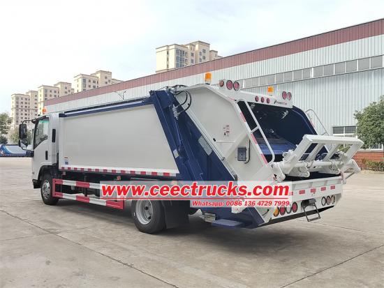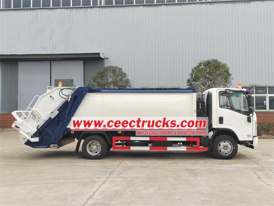 Isuzu 700P chassis,10cbm garbage capacityการ รถบรรทุกอีซูซุ 10 CBM แบบแยกส่วนท้าย เป็นยานพาหนะอัดขยะที่มีลักษณะเด่นคืออัตราการบีบอัดที่น่าทึ่ง ความจุในการบรรทุกที่มาก ประสิทธิภาพการทำงานที่รวดเร็ว และระดับเสียงรบกวนที่เงียบขับเคลื่อนด้วยเครื่องยนต์ดีเซลอันทรงพลัง กลไกการโหลดด้านหลังทำงานด้วยระบบไฮดรอลิก แขนไฮดรอลิกทำหน้าที่ยกและทิ้งถังขยะ ในขณะที่ระบบอัดภายในจะอัดขยะให้แน่น จึงเพิ่มความจุในการโหลดและเพิ่มประสิทธิภาพการจัดการขยะ