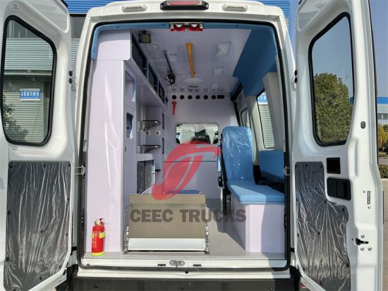 2. อุปกรณ์ทางการแพทย์ขั้นสูงและการออกแบบตามหลักมนุษยธรรม:ภายในห้องโดยสารทางการแพทย์มีอุปกรณ์ปฐมพยาบาลครบครันและทันสมัย ระบบเปลหามอัตโนมัติไม่เพียงแต่อำนวยความสะดวกในการเคลื่อนย้ายผู้ป่วยเท่านั้น แต่ยังช่วยลดภาระทางกายภาพของเจ้าหน้าที่ทางการแพทย์อีกด้วย ระบบปรับอากาศและเครื่องทำความร้อนที่ควบคุมแยกกันช่วยให้ผู้ป่วยและเจ้าหน้าที่ทางการแพทย์มีสภาพแวดล้อมที่สะดวกสบาย ในขณะที่หลอดไฟฆ่าเชื้อ UV และระบบระบายอากาศช่วยให้ปลอดภัยจากสุขอนามัย นอกจากนี้ ห้องโดยสารทางการแพทย์ยังมีระบบจ่ายออกซิเจนแบบครบครัน แท่นให้สารละลาย อินเวอร์เตอร์ 1,000 วัตต์ และอุปกรณ์อื่นๆ เพื่อรองรับการรักษาทางการแพทย์ฉุกเฉินต่างๆ ได้อย่างมีประสิทธิภาพ การออกแบบเหล่านี้สะท้อนให้เห็นความเข้าใจอย่างลึกซึ้งเกี่ยวกับความต้องการทางการแพทย์ ทำให้รถพยาบาลไม่เพียงแต่เป็นยานพาหนะเท่านั้น แต่ยังเป็นสถานีปฐมพยาบาลเคลื่อนที่อีกด้วย