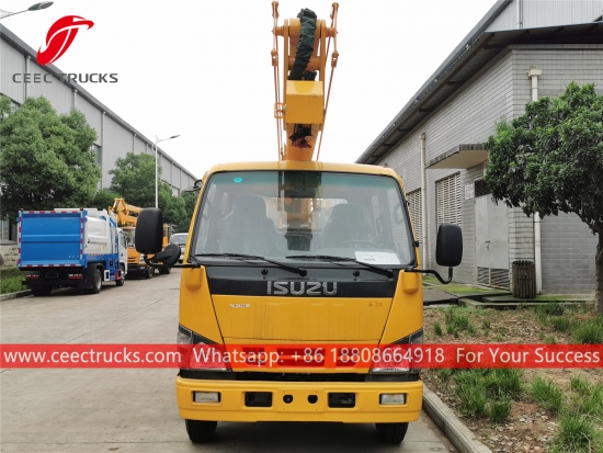 กระเช้าลอยฟ้าติดรถบรรทุก ISUZU สูง 14 ม. -อีกด้วยเรียกว่า รถบรรทุกทำงานบนแท่นลอยฟ้า ISUZU, รถยกไฮดรอลิก ISUZU สำหรับขาย, รถบรรทุกทำงานบนแท่นสูง ISUZU, รถบรรทุกถังยกแขนที่ขายดี, แพลตฟอร์มทำงานบนแท่นลอยฟ้าแบบเคลื่อนย้ายได้บูมยืดหดราคาถูก-เหมาะสำหรับการบำรุงรักษาไฟจราจร ไฟถนน ต้นไม้จัดสวน ทำความสะอาด/ตั้งป้าย และงานทางอากาศที่สูงอื่นๆ-