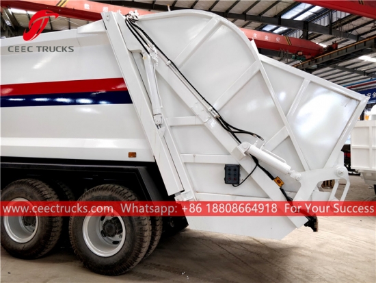รถบรรทุกขยะอัด ISUZU 20cbm ตัวถังรถบรรทุกใช้เครื่องยนต์ดีเซล ISUZU 300HP เกียร์ 9 เกียร์ที่รวดเร็ว กล่องควบคุม PLC เพื่อการใช้งานที่ง่ายดาย งานพ่นสีและโลโก้ทั้งหมดขึ้นอยู่กับความต้องการของลูกค้า