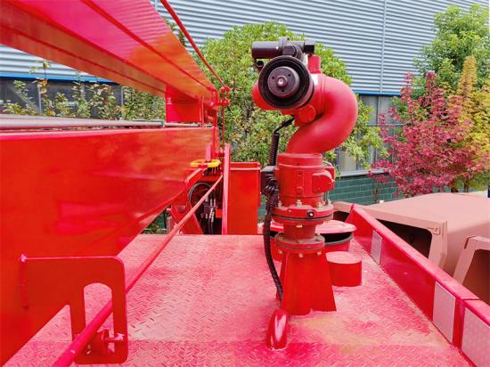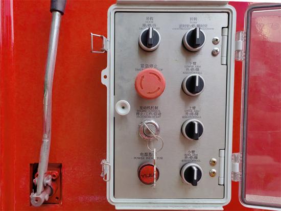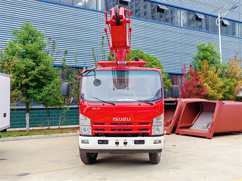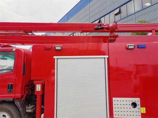 รถดับเพลิงหลายคันของอีซูซุพร้อมระบบถังสูงมีขาตั้งที่ขยายได้ 4 อัน ช่วยให้ยึดเกาะพื้นได้ดีขึ้นและช่วยควบคุมความแออัดบนท้องถนนได้ติดตั้งแขนพับยาว 16 ม. มีความยืดหยุ่นสูง เหมาะสำหรับสภาพแวดล้อมที่ซับซ้อน ติดตั้งระบบควบคุม PLC ของ SIEMENS เพื่อการทำงานที่สะดวก แขนพับยาว 16 ม. มีบูมทั้งหมด 3 บูม ได้แก่ บูมหลักด้านล่าง บูมด้านบน และบูมที่สามที่เล็กกว่า นอกจากนี้ยังมีถังหุ้มฉนวนซึ่งสามารถใช้ไฟฟ้า 220V ได้ เหมาะสำหรับการทำงานในที่สูง