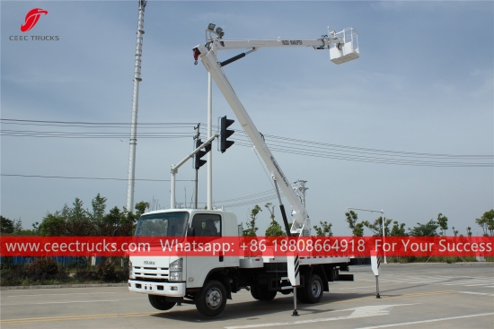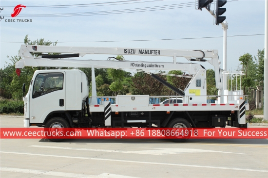รถกระเช้าไฟฟ้า 18 ม. อีซูซุ -อีกด้วยเรียกว่า รถบรรทุกกระเช้าลอยฟ้า ISUZU, รถยกคนไฮดรอลิก ISUZU, รถยกคน ISUZU, รถบรรทุกกระเช้ายกแขนขายดี, ISUZUระดับความสูงรถใช้งาน, บูมลิฟเตอร์ติดรถบรรทุกราคาถูก-เหมาะสำหรับการบำรุงรักษาไฟจราจร ไฟถนน ต้นไม้จัดสวน ทำความสะอาด/ตั้งป้าย และงานทางอากาศที่สูงอื่นๆ-